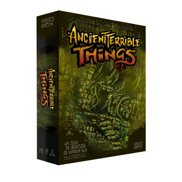 Ancient Terrible Things é um jogo de horror pulp que usa a mecânica de pressionar sua sorte e gerenciamento de dados para 2 a 4 jogadores de 14 anos ou mais, cuja partida se desenrola normalmente por 60 minutos de jogo.