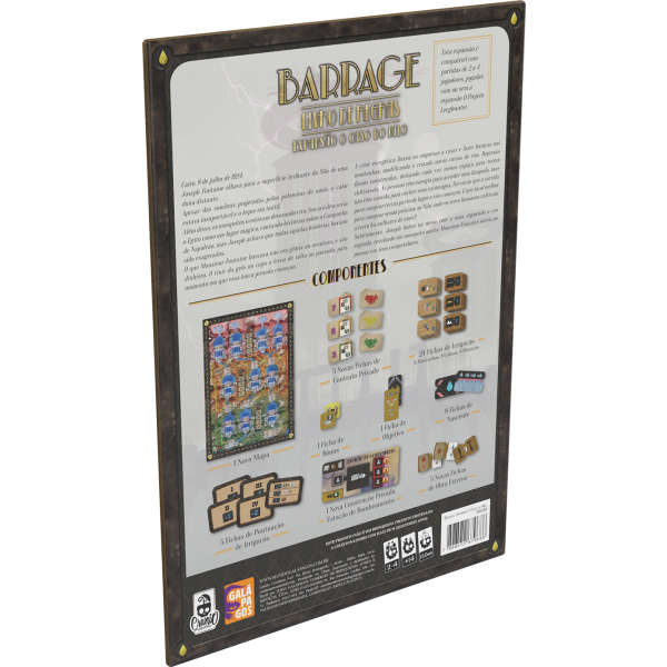 A expansão Barrage: O Caso do Nilo apresenta um novo mapa da área do Nilo, no qual os jogadores precisam enfrentar novos desafios - como lidar com o poderoso rio Nilo e as áreas de irrigação estratégicas. As fichas de irrigação adicionam um elemento de surpresa e uma nova mecânica ao jogo, permitindo que os jogadores realizem ações extras e pontuem ainda mais.