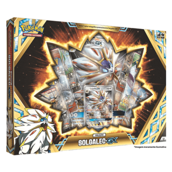 Solgaleo-GX é um Pokémon Lendário com garras radiantes e com um poder de cura enorme! Fortaleça a defesa e o ataque do seu jogo com esta coleção, que conta com Solgaleo-GX como uma carta holográfica promocional jogável e também como uma carta holográfica extragrande incrível! Convoque o verdadeiro poder das lendas com Solgaleo-GX!