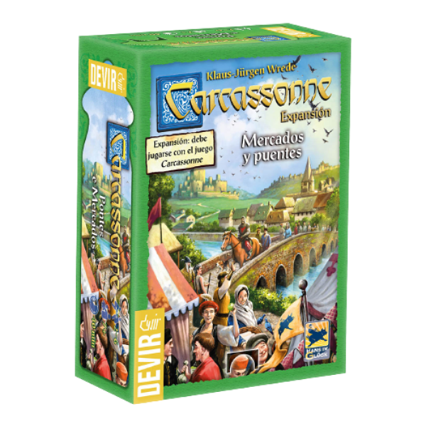 A oitava expansão para Carcassonne: Mercados e Pontes permite aos jogadores três novas opções durante o jogo: as pontes podem ser usadas para continuar um caminho ao longo de uma placa de campo, permitindo desse modo que uma estrada incompleta seja um segmento de campo. Elas são tratadas de outra forma e marcam apenas como estradas. Os marcadores de Castelo são colocados em cima de duas cidades do segmento e permitirá aos jogadores a chance de pontuar na próxima característica adjacente concluída. E bazares são um novo tipo de placa que permite aos jogadores leiloar peças em troca de pontos.