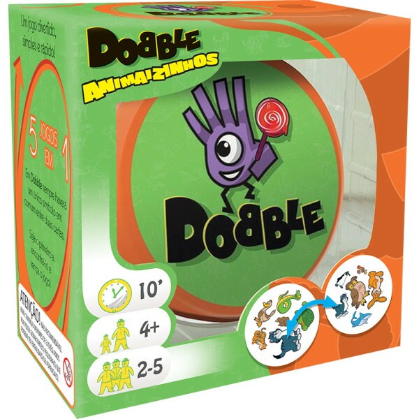 Dobble, o jogo de cartas que virou febre mundial, possui também a linha infantil, com imagens voltadas para o universo dos pequenos. Como na versão original, este jogo de velocidade e observação é fácil de aprender e diverte qualquer momento. Em Dobble Animaizinhos, o objetivo é encontrar qual o desenho animal em comum entre duas cartas o mais rápido possível.