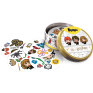 55 cartas com diâmetro de 8,5 cm 1 Livreto de Regras 1 Lata |