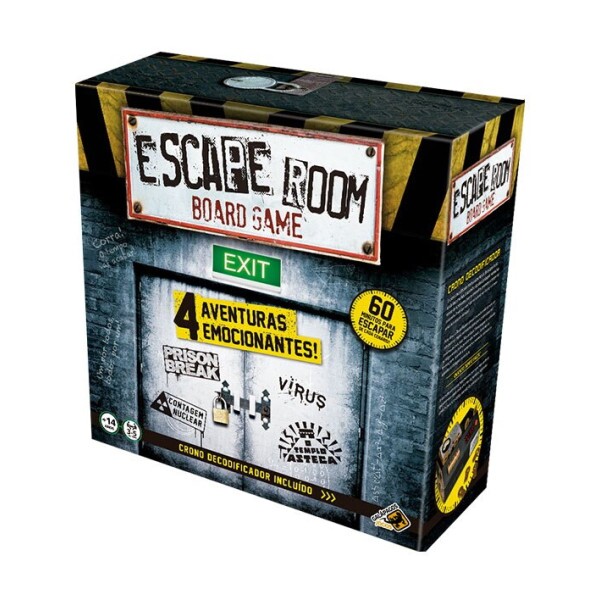 Escape Room: Board Game traz para as mesas a emoção dos jogos de escape. São quatro aventuras de 60 minutos cada, nas quais os jogadores precisarão resolver quebra-cabeças e solucionar o mistério por trás de cada história. O jogo vem com um decodificador digital que faz a contagem regressiva e emite música de fundo para ambientação, além de contar com compartimentos contendo pistas e espaços para colocar as chaves. São quatro jogos em um, numa verdadeira imersão!