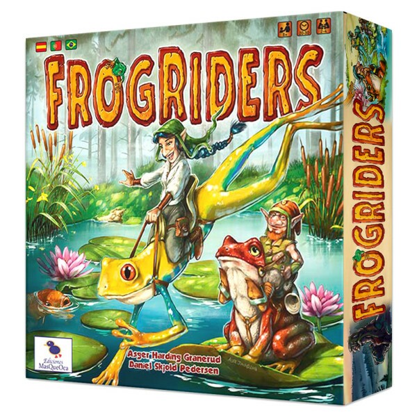 Frogriders é um jogo familiar e tático em que você coleta as miniaturas dos seus oponentes, fazendo-as saltar uma sobre a outra. Cada um dos Frogriders coletados permite que você o mantenha para marcar pontos ou o devolva para a aldeia, a fim de usar sua capacidade especial. Devido as muitas cartas de privilégio diferentes e várias cartas de pontuação (dos quais apenas alguns são usados em cada jogo), há muitas nuances táticas para descobrir e muitas estratégias para empregar e ganhar em Frogriders.