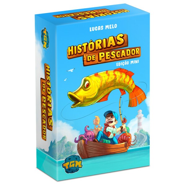 A edição mini do Histórias de Pescador é de 3-5 jogadores e não vem com o tabuleiro e a mini expansão “Pescadores”.