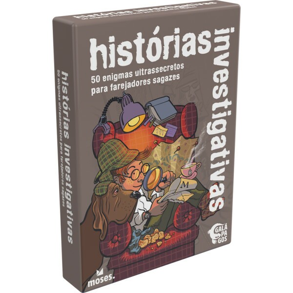 Histórias Investigativas (Detective Stories) é um jogo de cartas fácil de aprender e sem quantidade máxima de jogadores para se divertir no carro, na festa ou em absolutamente qualquer lugar!