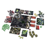 | Componentes | 6 tabuleiros de monstro; 6 figuras de papelão; 1 tabuleiro de Tóquio; 8 dados; 66 cartas de poder; 10 peças de vilania; cargas de energia; 6 marcadores de vilania; 27 fichas; 1 manual. |