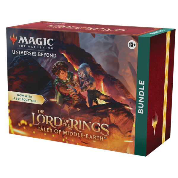 A Caixa de Booster de Draft de O Senhor dos Anéis: Contos da Terra Média contém 8 Boosters da Coleção de O Senhor dos Anéis: Contos da Terra Média — os melhores boosters para abrir por diversão — além de outros itens temáticos de O Senhor dos Anéis, com 4 cards com ilustração alternativa metalizados, 40 cards de terreno básico (20 metalizados tradicionais e 20 não metalizados), 1 marcador de vida Spindown grande, 1 caixa para armazenar cards e 2 cartões de referência.