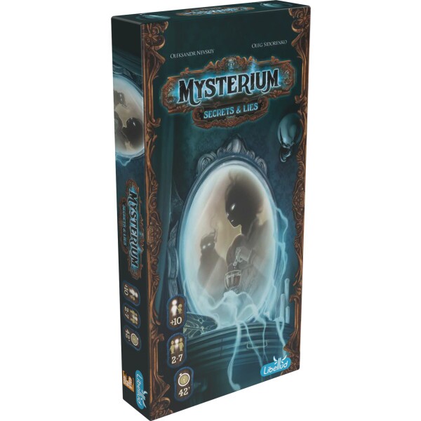 A mansão assombrada oculta um passado perturbador... Lance nova luz sobre os eventos que levaram à morte do fantasma em Secrets & Lies, a segunda expansão de Mysterium. Usando seus dons, a tarefa dos médiuns é erguer o véu destes eventos perturbadores, usando 18 novas cartas de história (que podem substituir as cartas e objeto). Descubra o que pode ter levado à morte do criado pela perspectiva dele.