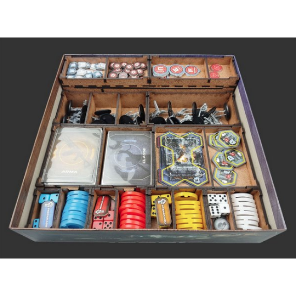 - Projetado para acomodar todo o jogo. Todas as peças cabem em seus espaços reservados.