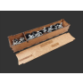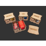 - Caixas para acomodar as cartas jogo, com separadores horizontais e nomes dos tipos de cartas.