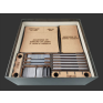 A caixa para armazenar as demais miniaturas, permite mantê-las em “pé” e separadas por tipos. Também conta com um espaço para armazenar os anéis de base para as miniaturas.