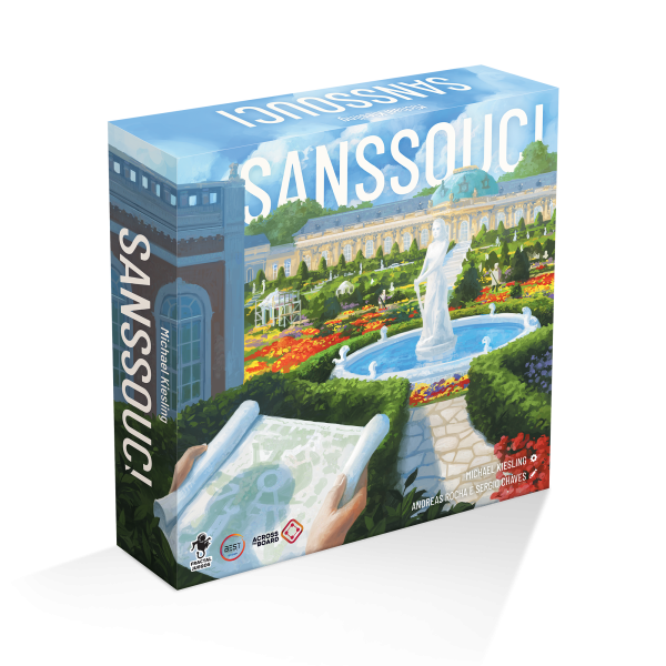 Em Sanssouci, a beleza e a estratégia se encontram na criação do seu próprio paraíso verdejante! Você e até três outros arquitetos são convocados a uma tarefa de prestígio: projetar e construir o melhor e mais imponente jardim no famoso Palácio de Sanssouci, um local de beleza e história inigualáveis.