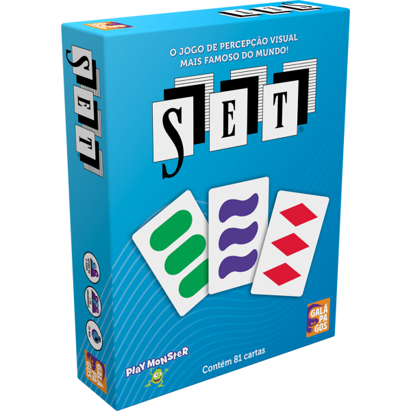 Descubra a emoção de SET, onde velocidade e adrenalina se encontram! Tente formar um SET reunindo três cartas em que tudo é igual ou tudo é diferente em cada uma das quatro categorias (cor forma, quantidade e preenchimento).