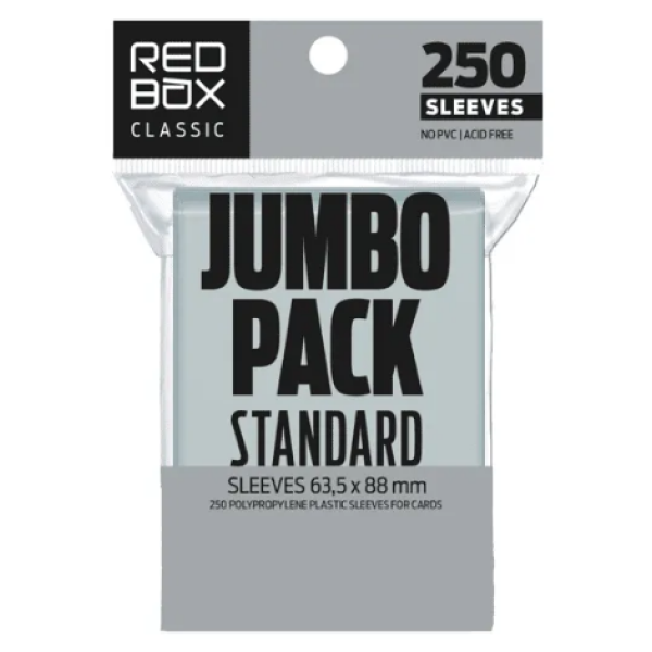 Linha Classic de Sleeves (luvas) transparentes para proteção de cartas, que além de facilitarem o embaralhamento ampliam a durabilidade do seu jogo, protegendo suas cartas do suor e acidentes com mãos gordurosas e outros líquidos típicos no habitat dos Board Games, mas em uma embalagem tamanho família, com 250 sleeves com preço promocional.