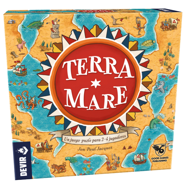 | Componentes | 1 peça inicial de mapa, 1 peça Vulcão/Redemoinho, 58 peças de mapa de dupla face , 2 ajudas de jogador, de dupla face, com as opções de pontuação, 1 marcador de pontos, 7 discos de madeira, 3 discos para a Terra – 1 para pontuação, 2 para Pontos de Passagem em partidas a 4 jogadores, 3 discos para o Mar – 1 para pontuação, 2 para Pontos de Passagem em partidas a 4 jogadores, 1 disco para o Cartógrafo, para pontuação em partidas a 3 jogadores, manual |