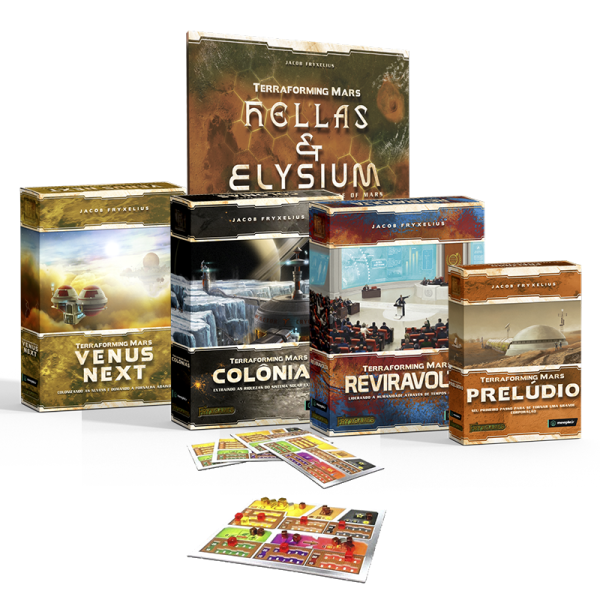 | Componentes | Esse combo inclui: 1 unidade da expansão Prelúdio 1 unidade da expansão Venus Next 1 unidade da expansão Colônias 1 unidade da expansão Hellas & Elysium 1 unidade da expansão Reviravolta 1 pacote de tabuleiros em 2 níveis |