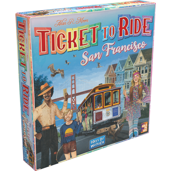 Em Ticket To Ride: San Francisco os jogadores viajam pela cidade usando um bondinho (e às vezes barcos) ao invés dos clássicos trens. Aproveite a viagem no bondinho e colete souvenirs nos pontos turísticos da cidade! Os tokens de souvenirs são coletados quando rotas são construídas e são mais uma forma de pontuar além da pontuação clássica de Ticket to Ride (pontos por rotas construídas e por objetivos construídos).