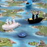 | Componentes | 7 Navios Plásticos 48 Componentes de Madeira 40 Caixotes de Espólios 4 Dobrões de Metal 1 Bolsa de Tecido 3 Dados 42 Marcadores Cartonados 4 Tabuleiros de Timão° 4 Tabuleiros de Lenda° 16 Cartas de Mapa° 1 Tabuleiro de Mercado° 28 Cartas de Capitão e Tripulação* 11 Cartas de Mercadores* 1 Manual |