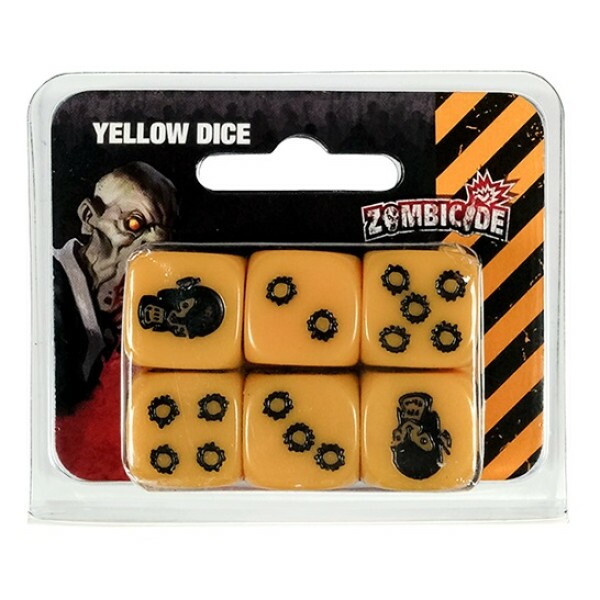 | Componentes | Seis dados especiais de zombicide de cor amarela |